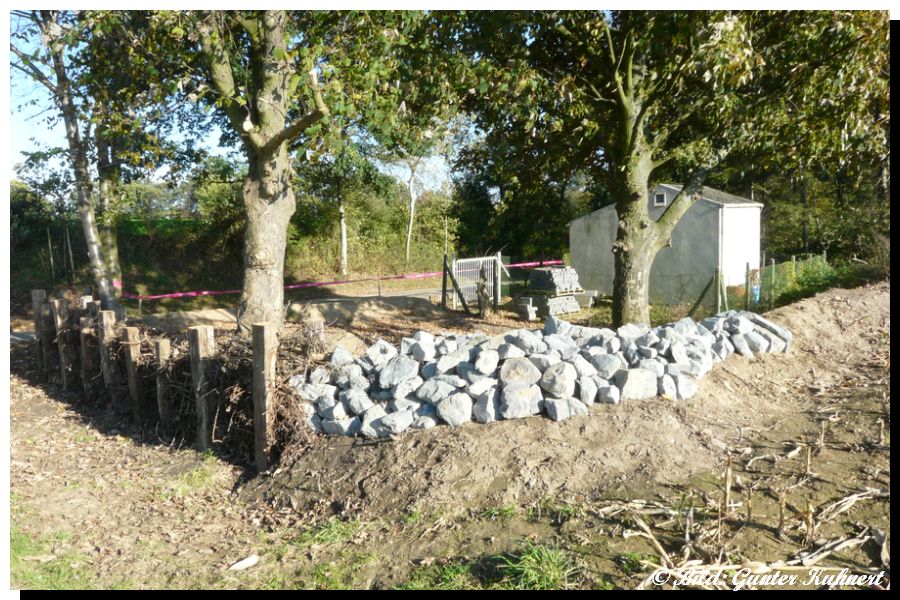 weiterhin ein bepflanzter Wall und eine Trockenmauer entstehen um für die