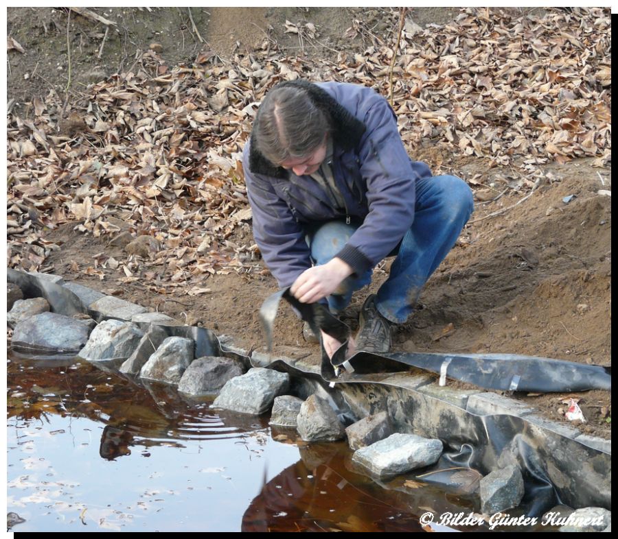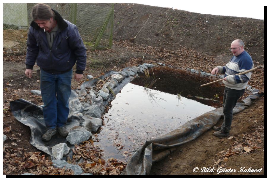 im Spätherbst 2008 mit auslegen der Teichfolie,