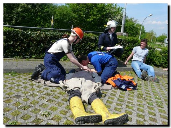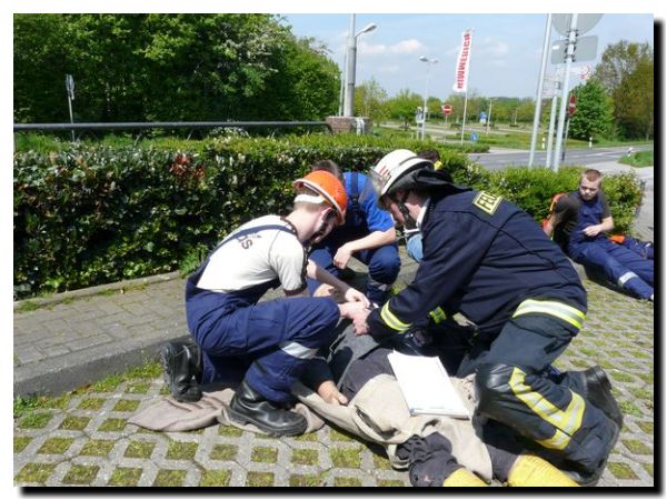 Die Jugendfeuerwehr wird unterrichtet in Wiederbelebungsmaßnahmen