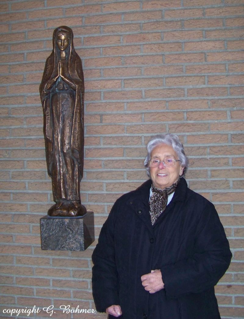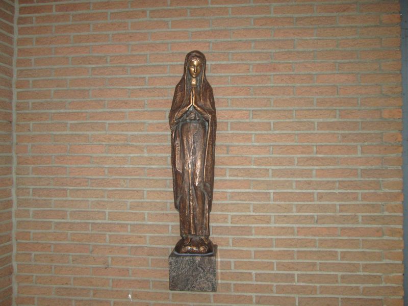 Marienstatur Horster Friedhof 2014 Eine Marienstatur, (gespendet von Frau Käthe Schnitzler) wurde von Norbert und Adam an der vorderen überdachten Wand der Leichenhalle aufgestellt.. Unser Dank gilt auch der Firma Adreani-Knippel GmbH, die den Sockel, auf der die Statur aufgestellt wurde, spendete.