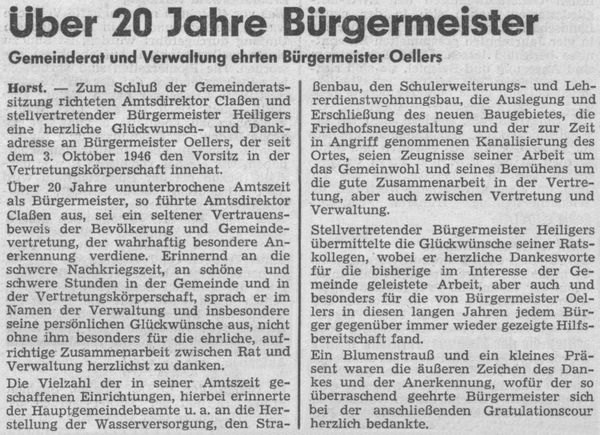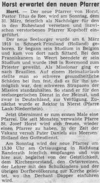 Seite 13 Chronik der Schule Horst. Frühjahr 1963 - neuer Horster Pfarrer wird eingeführt.